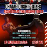 CHAMPIONSHIP TITLES RISING STARS MUAY THAI BOXING FIGHTS - CHAMPIONSHIP TITLES RISING STARS MUAY THAI BOXING FIGHTS 30 NOVEMBER 2025 17.00 PM STANDARD TICKETS: ADULT: £30.00. CHILD: £20.00 (UPTO 12 YRS) RINGSIDE TICKETS: ADULT: £40.00. CHILD: £30.00 (UPTO 12 YRS) The Roundhouse, Kenton Close, Bolton, BL1 3TZ